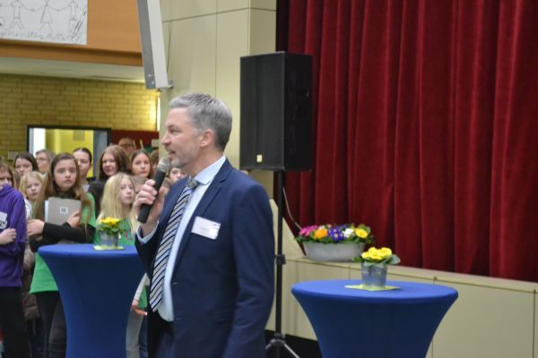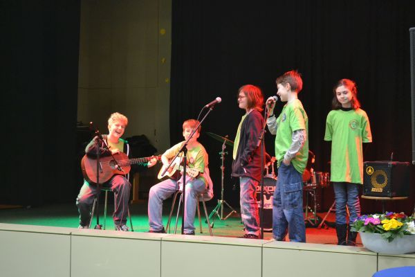 Um 9.30 Uhr spielte die Klasse 6b mit ihrem Musiklehrer zwei Songs zur musikalischen Begrüßung. Der Schulleiter Timo Off begrüßte die zahlreichen Anwesenden, bevor die neue Stufenleiterin Frau Aislin Heemsoth das Programm erläuterte.