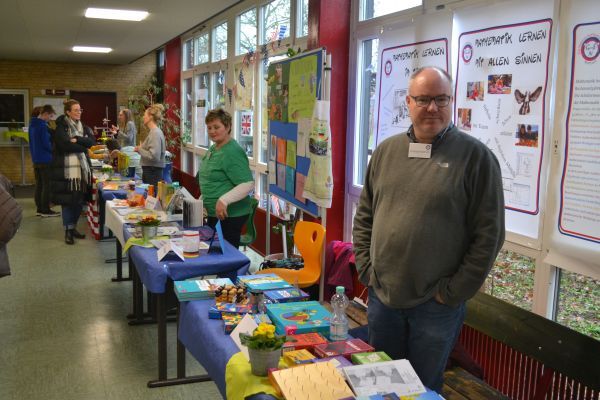 Die Eltern begaben sich in das Gebäude I, wo Timo Off über die Schule ausführlich informierte und für Nachfragen zur Verfügung stand und wo es Kaffee, Brötchen und Kuchen gab. Zwischenzeitlich wurden die jetzigen Viertklässler/-innen in Gruppen von Achtklässler/-innen durch die Schule geführt. Dabei lernten sie viele Stationen mit neuen und alten Fächern kennen: Englisch, Sport, Naturwissenschaften, Weltkunde, Verbraucherbildung, Darstellendes Spiel und vieles mehr.