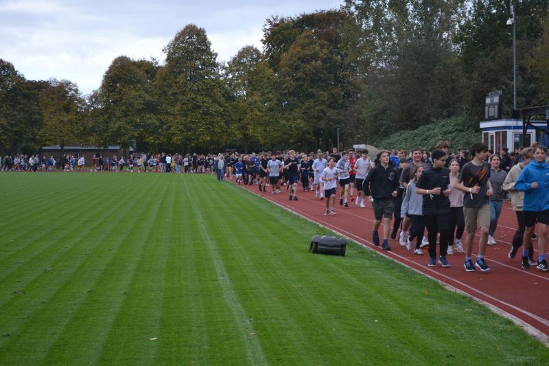 Etwa 800 Schülerinnen, Schüler und Lehrkräfte liefen die etwa einen Kilometer lange Schulrunde auf Zeit. Es galt, 15, 30, 60 oder sogar 90 Minuten durchzulaufen. Nach kurzen Worten der Schulleiterin Frau Günzel, dem Schülersprecher Watomi und einem Aufwärmprogramm ging es auch schon los. Gleich im Anschluss wurden in den Klassen die Urkunden verteilt, bevor es in die Ferien ging.
