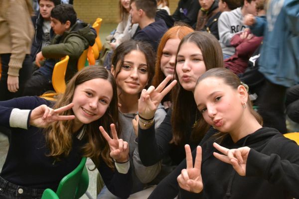Jeweils drei bis vier Jahrgänge trafen sich in der Aula.